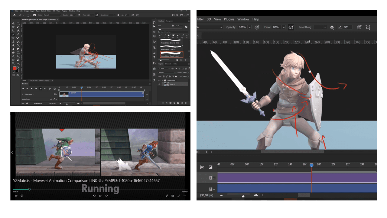 I made 18 Link animations (from Super Smash Bros. Ultimate, 2018) using three movement styles: