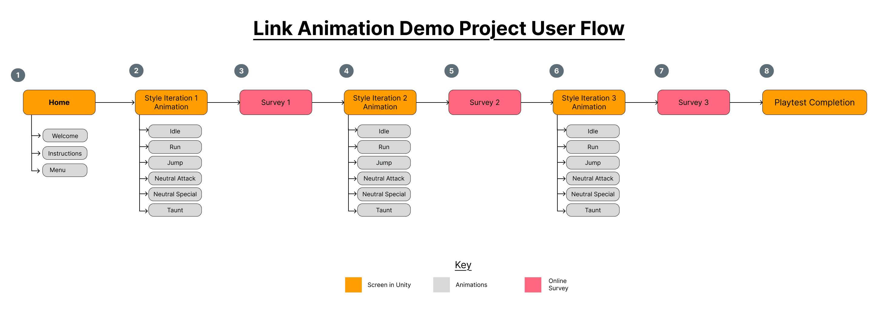 Limited scope to 6 core actions: Idle, Run, Jump, Attack, Special, Taunt